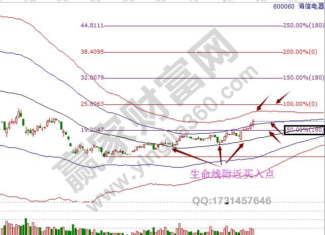 趨勢及價格:從極反通道來看,海信電器近期給的操作機會是很多的,三次回踩生命線,都是建倉的位置,如果長期有關(guān)注的話,相信這幾個買點應(yīng)該是可以把握的。而當(dāng)前市場已經(jīng)突破藍(lán)色外軌線,進入超強通道,趨勢上是符合買入條件的。同時,市場短期的成交量也配合的不錯,因此,按照極反通道操作規(guī)則,藍(lán)色線附近是可以考慮建倉的。價格上來看,從低位做出向上的江恩價格百分比,同時保留50%位置,可以看到市場前期一直受阻于該位置,12月15日市場放量跳空突破,50%位置轉(zhuǎn)換為支撐,同樣,按照價格買賣,此位置附近也是一個買入位,其重要阻力位就是上面的0度位置。