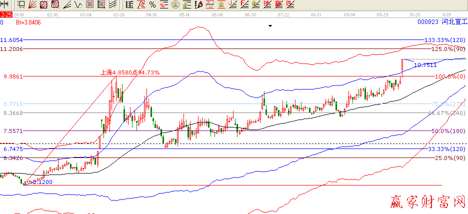 后市判研:涉及概念,北京冬奧會(huì)參股新股,創(chuàng)投,京津冀一體化 張北新區(qū)開工建設(shè)必將有大量挖掘機(jī)需求,后市看高股價(jià)。從江恩贏家工具極反通道來看該股今日放量漲停突破藍(lán)色極反通道上軌線,后市可積極關(guān)注這個(gè)位置的支撐,回調(diào)到這個(gè)位置如果站穩(wěn),可以積極做多,當(dāng)然如果跌破這個(gè)位置就要考慮止損止盈了。