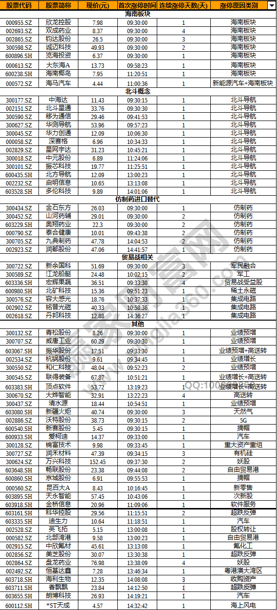 盤面上,北斗地圖APP將于5月1日上線,衛(wèi)星導(dǎo)航概念股掀起漲停潮,中海達(dá)(300177)、華測(cè)導(dǎo)航(300627)、移為通信(300590)、北斗星通(002151)和華力創(chuàng)通(300045)等9股漲停。博鰲亞洲論壇2018年年會(huì)將于4月8日至11日在海南博鰲舉行,海南板塊大漲,大東海A(000613)、覽海投資(600896)、鈞達(dá)股份(002865)、雙成藥業(yè)(002693)、海南椰島(600238)、海馬汽車(000572)7股漲停。
