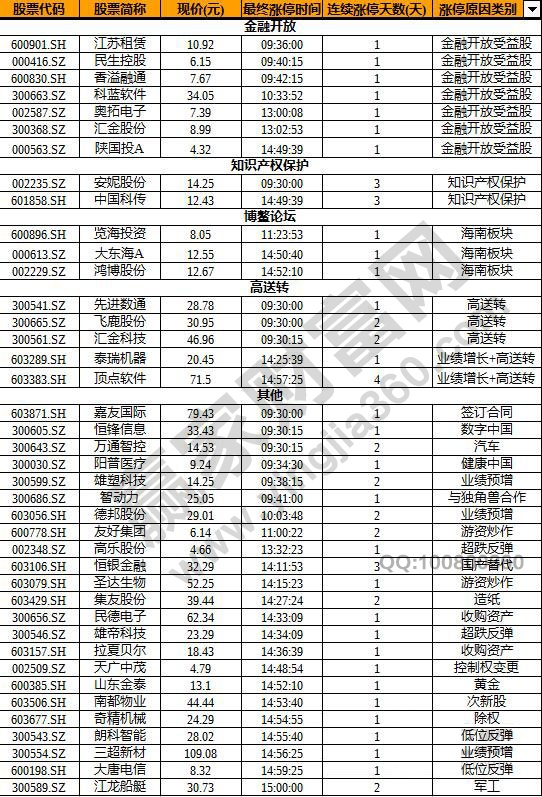 盤面上,多元金融板塊表現(xiàn)搶眼,香溢融通(600830)、江蘇租賃(600901)等4股漲停,市場避險情緒,黃金延續(xù)強勢。知識產(chǎn)權(quán)概念股大漲,安妮股份(002235)、中國科傳(601858)三連板。醫(yī)療器械概念股大漲,科藍軟件(300663)漲停。近期高位強勢股午后殺跌,近期強勢股阿科力(603722)、誠邁科技(300598)、九典制藥(300705)、惠威科技(002888)、宏輝果蔬(603336)等集體跌停。臨近尾盤,海南股再度受資金追捧,大東海A(000613)、覽海投資(600896)、海峽股份(002320)等多股漲停。