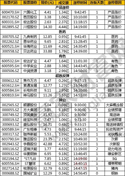 產(chǎn)品漲價、醫(yī)藥、有色 封板效率:較高