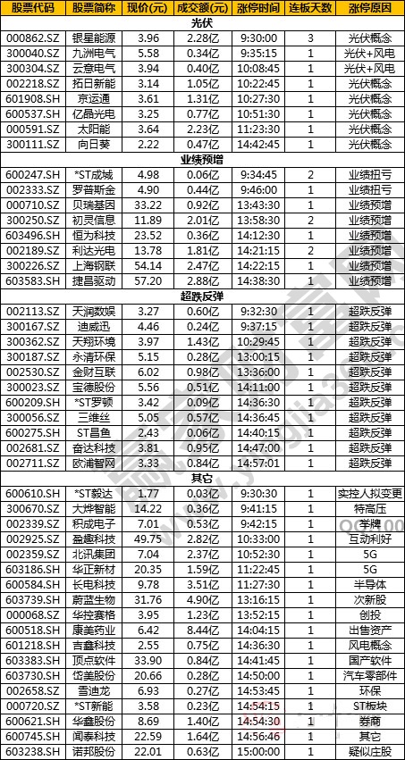 光伏、業(yè)績預(yù)增、超跌反彈 封板效率:較高