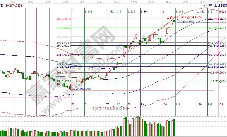 大盤日K線如期按規(guī)則站穩(wěn)一線看高一線,從極反通道藍(lán)色上軌線反攻到紅色外軌線,上周分析中已談到,指數(shù)本周進(jìn)入日線時間窗口周期,同時到達(dá)紅色外軌線走勢將轉(zhuǎn)反復(fù),但整體震蕩上攻趨勢未改變;空間方面,波段百分比延伸線3倍循環(huán)180度3360接近,江恩輪中輪135度是3356點【3350附近是多周期共振位,短線、波段均是風(fēng)險大于機會】,短期壓力是3261、3283點,短期支撐3228、3196點;時間方面,本周是4月時間窗口密集區(qū)間,8-15號跟蹤與紅色外軌線關(guān)注。操作策略,日線超強通道運行,穩(wěn)健者倉位保持在5成,激進(jìn)者倉位保持在7成,靠近紅色外軌線持倉遵守提高止賺位分批獲利。