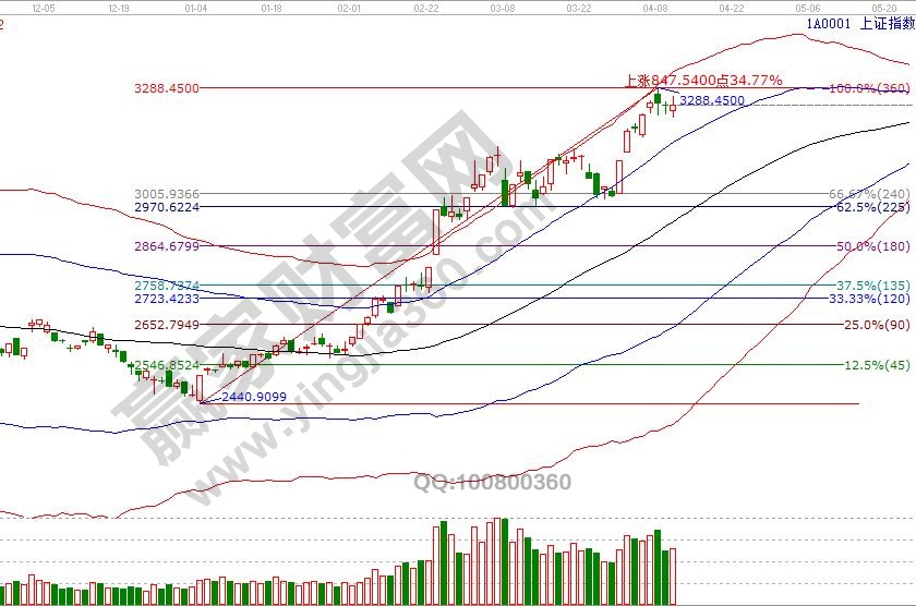 大盤日K線保持在極反通道藍色上軌與紅色外軌線構成的超強通道內運行,提前公布8-15號為贏家江恩系統時間工具提示的時間窗口,預判此時間段指數走勢會反復,當前走勢同預期相符,市場整體延續上攻趨勢,待休整結束不破藍色上軌線前提下觀察是否有再創新高動作;空間方面,波段百分比延伸線、江恩價格四方形分析得出,短期壓力是3261、3283點,短期支撐3228、3196點。操作策略,日線超強通道運行,穩健者倉位保持在5成,激進者倉位保持在7成,靠近紅色外軌線持倉遵守提高止賺位分批獲利。