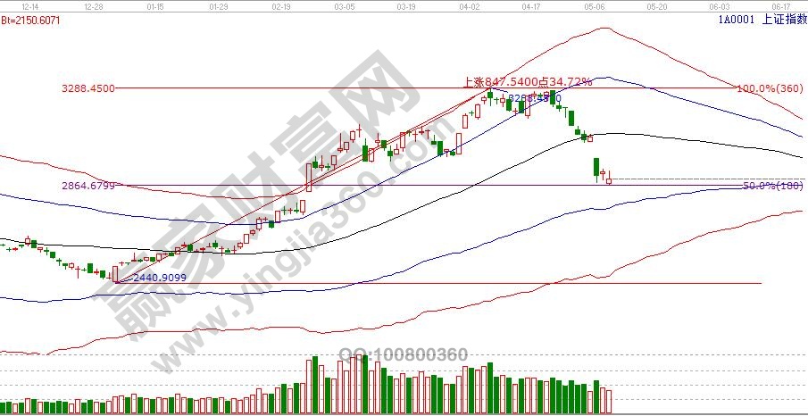 8號是近期一直再談的大盤日線時間窗口,最低點2866點與波段百分比(2440-3228)二分位180度2864點僅相差2個點,距離理想的參考位2800-2840還有少許空間,但此點位已具備短線參考價值。帶領大家休息了半個月后,早盤在贏家江恩系統VIP學員群依據此工具信號提示空倉者可以輕倉參與,待下周外部因素明朗后再做近一步計劃。極反通道藍色下軌線是持倉籌碼的底線,17號是5月份第二個時間窗口。9號盤中支撐是2877點、2860點;盤中壓力是2928點、2944點。操作策略,指數擊破黑色生命線,藍色下軌線是回撤目標位,同時指數靠近短線參考區適量開新倉,整體倉位控制在3成以內,低風險者可以等待藍色下軌線。