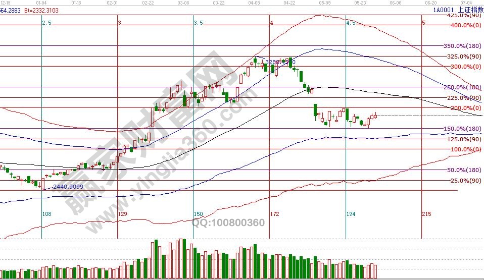 27號指數再探波段百分比1倍循環位180度2834點后展開反彈,按今天盤中最高測算3天上漲已有100點,28號盤中已在贏家江恩系統VIP學員群中提示2928-2960為第一目標位,進入此區間先獲利了解一部分籌碼,剩下的持倉等待,目前整體K線處于極反通道生命線下弱勢區域橫盤震蕩,第一目標區不能放量突破,市場存在反復回探2877-2887需求(短周期生命線),市場整體還處于反彈周期內。江恩時間周期工具測算,6月時間窗口分別是4(5)號、13號、25號。30號盤中壓力是225度2944點、180度2928點,盤中支撐是45度2877、0度2860點。操作策略,指數擊破黑色生命線進入弱勢區域,整體持倉保持在3-5成,紀律性強且有技術者可以借助短周期極反通道倉位輪動。
