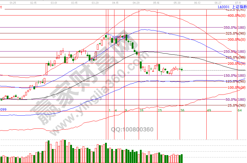 江恩時間周期精準判斷出5月份市場拐點,4、5號是6月份第一個日線時間窗口,投資者明后兩天應(yīng)關(guān)注好市場方向選擇;趨勢與空間結(jié)合判斷,目前整體處于反彈周期,上周進入反彈第一目標區(qū)2928-2960后量能不及回落,指數(shù)不破波段百分比延伸線二分位2834點反彈預(yù)期不變,待突破第一區(qū)間后反彈將全面展開。4號盤中壓力是135度2911點、180度2928點,盤中支撐是45度2877、0度2860點,6月時間窗口分別是4(5)號、13號、25號。操作策略,指數(shù)擊破黑色生命線進入弱勢區(qū)域,整體持倉保持在3-4成,做到進可攻退可守。