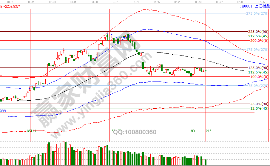 大盤連續(xù)三個(gè)交易日收盤在贏家江恩系統(tǒng)工具分析的關(guān)鍵區(qū)2880-2890之間,盤中擊破2880后收復(fù),此區(qū)間是通過(guò)江恩價(jià)格圖表四方形和60分鐘極反通道生命線判斷得出。指數(shù)自3288點(diǎn)調(diào)整后持續(xù)的橫盤,主要是日K線擊破極反通道生命線進(jìn)入弱勢(shì)區(qū),疊加下旬外部不確定性因素所導(dǎo)致,市場(chǎng)最終會(huì)按自身運(yùn)行規(guī)律而運(yùn)行,投資者所要做的就是順應(yīng)市場(chǎng)、跟隨市場(chǎng),并做出相對(duì)應(yīng)的策略。從技術(shù)角度出發(fā),關(guān)鍵位不破保持延續(xù)反彈觀點(diǎn)。規(guī)則紀(jì)律讓我們?cè)谑袌?chǎng)中生存,通過(guò)工具量化方法與規(guī)則,更能提升有效的判斷,交易不單純指的是買入、賣出,持倉(cāng)與休息也是不可或缺的組成部分。6月19號(hào)盤中壓力是135度2911點(diǎn)、180度2928點(diǎn),盤中支撐是0度2860、315度2844點(diǎn)。操作策略,指數(shù)處于極反通道弱勢(shì)區(qū)域的反彈走勢(shì),繼續(xù)關(guān)注2880-2890區(qū)間得失做持倉(cāng)決策,整體持倉(cāng)保持3-5成。