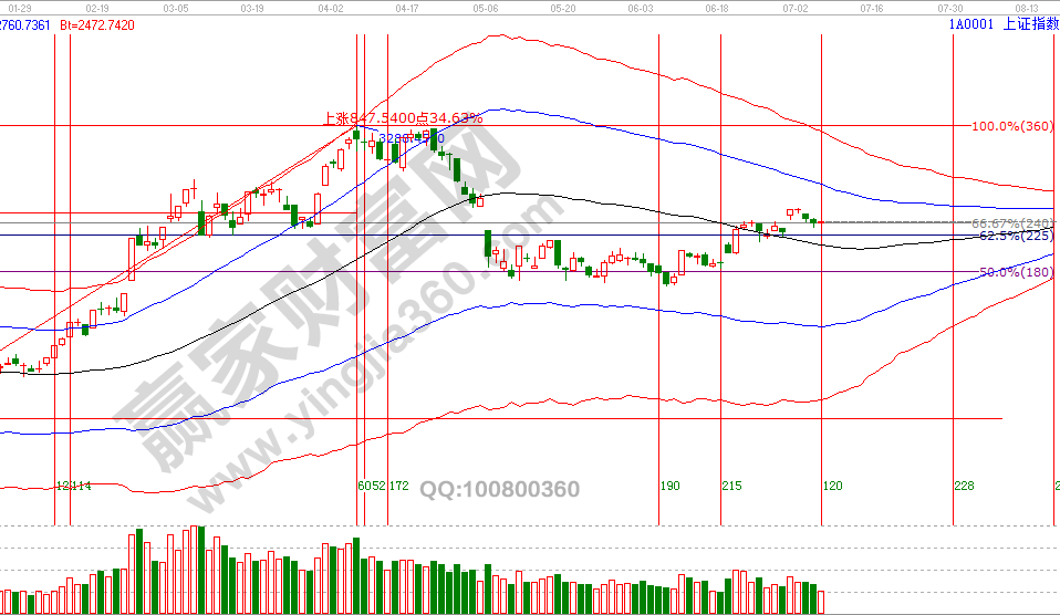 了解如何判斷未來的市場(chǎng)運(yùn)行,最快的方法就是研究歷史。2號(hào)依據(jù)贏家江恩系統(tǒng)工具所提出的周期共振警示信號(hào),并給出回探期具有參考價(jià)值的位置是60分鐘生命線,經(jīng)過3天時(shí)間市場(chǎng)再一次驗(yàn)證了極反通道周期推導(dǎo)的實(shí)戰(zhàn)性,此方法應(yīng)用在學(xué)員區(qū)有過講解。指數(shù)觸及至短期關(guān)鍵位后出現(xiàn)止跌,強(qiáng)度不佳,但午盤點(diǎn)評(píng)中談到輕倉或空倉者午盤可以試探性參與,一切遵守方法信號(hào)、用紀(jì)律規(guī)則交易,這是同普通散戶巨大差別。本周參考位支撐是2944、2978點(diǎn),壓力是3051、3074點(diǎn),7月8號(hào)盤中壓力是45度3016點(diǎn)、90度3036點(diǎn),盤中支撐是315度2978點(diǎn),10號(hào)為土星沖日。操作策略,指數(shù)極反通道生命線上安全區(qū)域震蕩上攻,反彈動(dòng)作還未結(jié)束,今日博弈籌碼以短期關(guān)鍵位做決策,整體持倉保持3-5成。