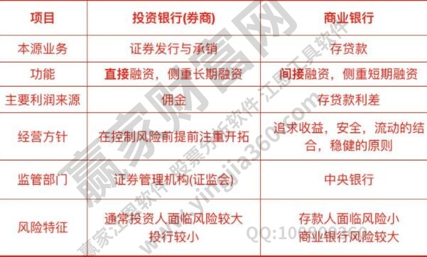 1.從基礎業務來看,投資銀行的基礎業務是證券,承銷。商業銀行的基礎業務是存貸款。