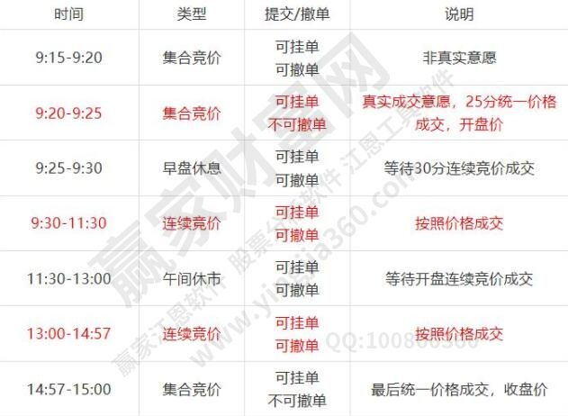 (一)競價方式:一定的時間會處理不同的競價,例如在上午9:15–9:25的時候,就會進行集合競價;而在在上午9:30–11:30、下午1:00–3:00這兩個時間段的時候,就會進行連續的競價。