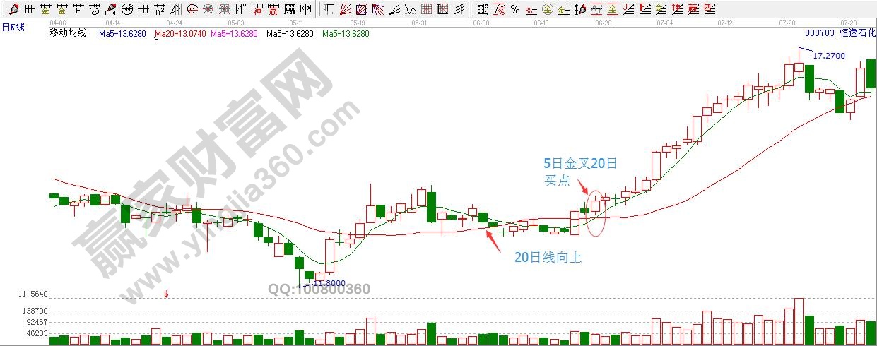 1、20日均線向上時,5日均線金叉20日均線。