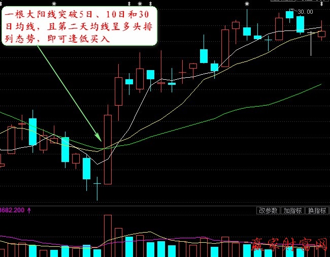2.在股市中,投資者應該積極的去關注5日、10日、30日移動平均線的變化情況,這樣才能夠在股價出現變動的時候,尋找到合適的入市時機。當股價曲線由下向上突破5日、10日、30日移動平均線,且三條移動平均線呈多頭排列的時候,投資者應該及時關注,因為這些現象的出現想我們傳達著一個十分重要的信號。但是,投資者在以上的背景下尚且不能夠判斷出股市的趨勢,而當且三條移動平均線呈多頭排列的時候,此時說明股價即將出現新一輪的上漲跡象,此時多方力量也已經占據股市主力,此時投資應該及時入市。