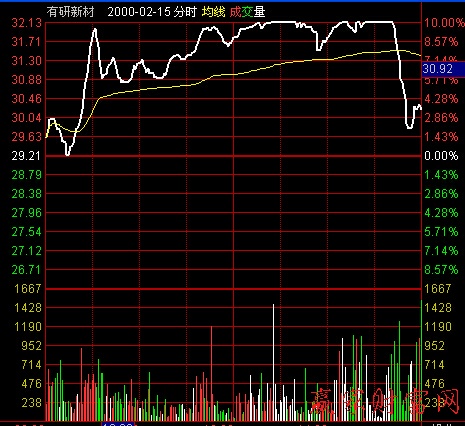有研新材2000年2月15日開盤一個小時后直線拉至漲停,震蕩后,一直封住漲停板,走勢非常強勢,看似主力已經鐵定要封住漲停板。可是尾盤10分鐘,該股竟然突然打開漲停板,成交量有所放大,這就讓人摸不著頭腦了。如果主力為了后市繼續拉升,自然是封住漲停板最好,這樣可以吸引更多買盤涌入。那是不是當時拋盤太大了呢,也應該不是。我們可以看到在整個漲停期間,成交量非常小,說明拋盤不多。那只能說明主力自己不愿意封住漲停板了。難道是主力為了吸籌?也很難解釋,如果要吸籌,那就不應該在前面牢牢封住漲停板。封住漲停板就讓很多賣盤堅定了持股信心,那主力就難以達到吸籌的目的。如此說來,那就是另有原因了。最大的可能就是消息面出了問題,主力臨時改變了操盤計劃,也很可能是不得已而為之。