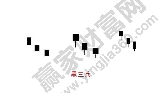 三根中陰線組成黑三兵,陰線的開盤價切入前一天的陰線,上影線以及下影線,短點比較好,如果是高位出現(xiàn)黑三兵,就要小心股價下跌的趨勢。