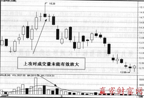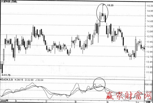 再以大亞股份為例,8月28日股價(jià)最高上摸15.2元,臨近15.3元重要阻力位,且上攻時(shí)成交最未能有效放大(與8月24日相比),也印證了KDJ指標(biāo)發(fā)出的賣(mài)出信號(hào),如圖所示。