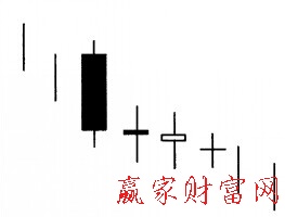 下跌三順星出現在下跌趨勢的初期或中期。它雖然名為三顆星,但實際上卻是由四根K線組成的,先是收出一根大陰線或中陰線,緊接著在這根陰線的下端出現三根實體非常小的K線,這兩根小K線可以是小陽線或小陰線,也可以是十字線,如圖所示。底部十字星股民朋友要怎么理解呢?