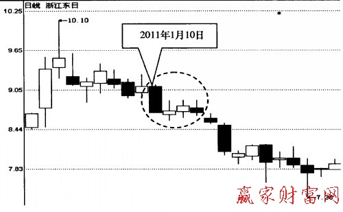 2010年1月10日,浙江東日收出一根中陰線。