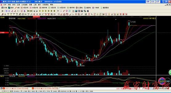 南方航空在4月11日就一直開始下跌,而且幅度還很大,估計這時候很多人對這支股都絕望了,大家可能都知道是什么原因導致的,對,就是“馬航時間”,那段時間整個航空行業的股市情況都很不好,根據均線系統也是可以看到多條均線由短期到長期自上而下排列形成空頭排列。僅僅看均線系統估計確實很讓人絕望,但是,我們可以看一下下面的MACD技術指標。