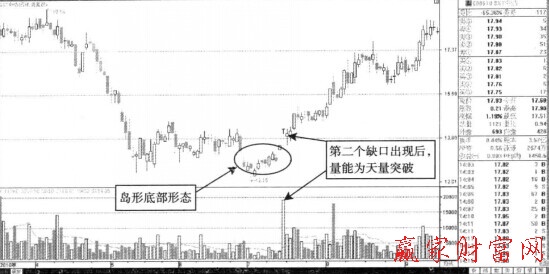 如圖所示,中珠控股的走勢中,底部島形反轉(zhuǎn)的形態(tài)更像是圓弧形反轉(zhuǎn)走勢。而圖中所示的跳空拉升缺口的完成,股價(jià)快速暴漲的背后,是放量八倍陽線的出現(xiàn)。該股持續(xù)走強(qiáng)的開始就在該股放量陽線出現(xiàn)之時(shí)。
