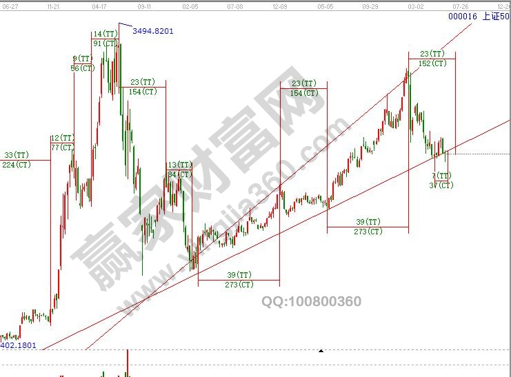 3、時間周期,上證50周線的下跌周期還差3-5周才能結束,周線失守生命線2730點,趨勢線2660糾纏也失守,要想見底啟動行情,先把這兩個位置收復了,我才能改變我看空的觀點。