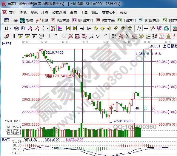 此拐點(diǎn)是反彈的中繼還是反彈的結(jié)束呢?通過(guò)短周期進(jìn)行解決,20號(hào)15分鐘突破生命線為短線買(mǎi)點(diǎn),26號(hào)失守15分鐘生命線為賣(mài)點(diǎn),【依據(jù)贏家江恩操盤(pán)規(guī)則:動(dòng)于陰末止于陽(yáng)極】對(duì)于2691點(diǎn)的反彈最后防線是60分鐘生命線2850附近,此位置不破日線有繼續(xù)向日線生命線反彈的動(dòng)能,失守則宣布反彈結(jié)束,再度進(jìn)入摸底【漲中之消,其消也漸微,消中之長(zhǎng),其漲也亦漸微】。