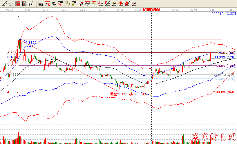 從圖中可以看出如果該股近期突破25%的位置,將繼續(xù)看高一線(xiàn),如果不能突破我們就需要注意生命線(xiàn)位置的支撐點(diǎn)(7.50附近)了,破了就懂的止損出來(lái)。