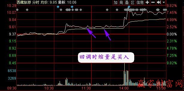 三、觀察沖高回調的個股,若成交量萎縮時在考慮買入。