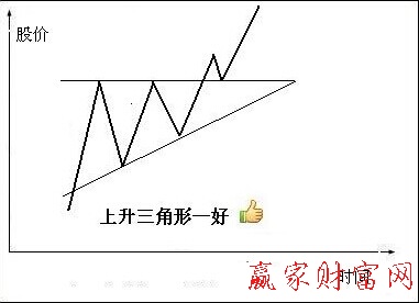 前面兩種形態都是底部的形態,能操作固然好。還有一些圖形時出現在上升途中,在股價有了一波拉升后出現調整后再繼續拉升。短線投資者可以在股票整理的時候持幣觀望。在多種的盤整走勢中,上升三角形是一種比較常見的,同時也是最標準的整理形式。在股價有了一波拉升后,在阻力位置受到壓力回踩,也有可能是之前這位置的套牢盤形成的拋壓。在回踩的的時候成交量萎縮,這說明拋壓不是很著急,到達阻力位才會形成拋壓。在這一階段,股價回踩后下方支撐站穩就開始再一次的上漲。上漲到壓力位的時候,同樣遇到阻力,但是相比第一次,這時候的壓力要小,可以觀察成交量。在之后股價自然上漲突破了壓力,吃掉了原來的賣盤。在上升三角行沒有形成之前,也是沒有突破壓力之前,股票方向是未知的,如果不是向上突破,這就成為了頭部形態。所以,在操作這一形態的時候不能輕易買入,一定要等形態完成。很多投資者都在等待它的完成,形成上漲的走勢是自然而然的。