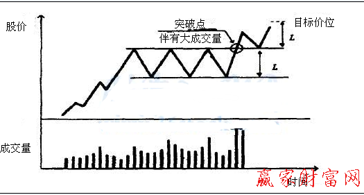 矩形有一個升幅,當矩形向上突破的時候,最少要上漲到矩形的高度才可以,大的矩形整理比小的要可靠得多。股價來回震蕩可多可少,這要看莊家的洗盤需要。在實戰操作中,這種形態不是很多,股價常常會在整理的末期標明自己的意圖。矩形的特征我們總結:1、整理的時間長。2、壓力支撐呈水平線,兩者平行。3、突破壓力的時候成交量巨大。4、盤整的時間越長,后市行情越好。
