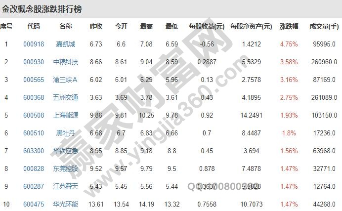 金改概念是受到金融概念利好的券商信托、保險以及銀行等板塊的股票,主要的金改概念股包括金山開發、小商品城以及浙江東日等。a股市場中金改的一系列體系對于券商信托、保險以及銀行等板塊的股票形成了向上刺激的動力,收到利好政策的影響,金改概念走強,并且對于整個a股的趨勢見底回升也有非常重要的作用。