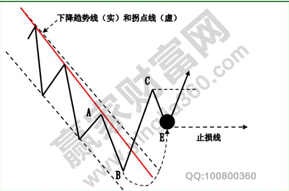 觀察前期震蕩出現(xiàn)的三角形底邊,股價低破即賣;