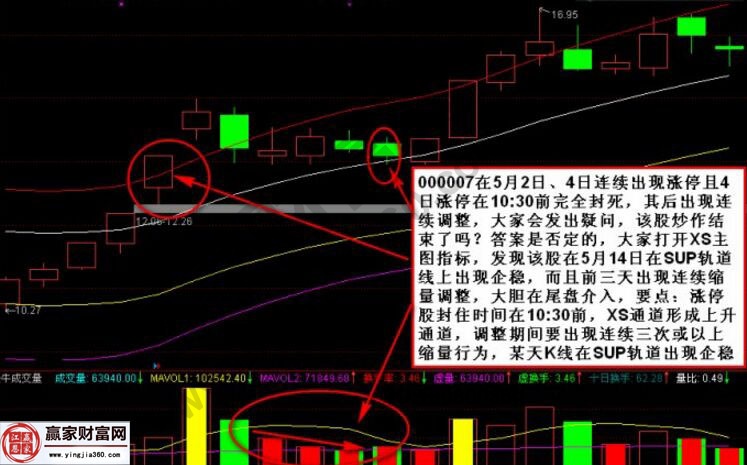 在出現陰線調整的時候?大家就會有疑問,那就是是不是主力即將結束該股了?當然答案是否定的,因為通過上面的走勢圖,我們可以就看到,該股的第二根陰線落實通道2上出現企穩,大膽買進。