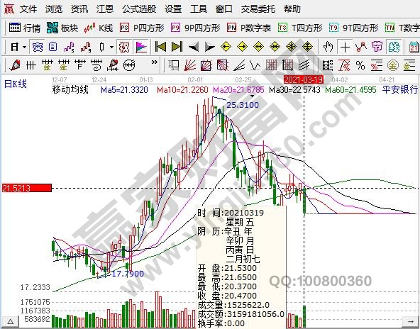 下圖是平安銀行000001股票在2021年3月19日的股票k線圖: